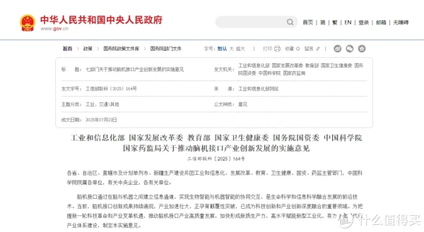 这已是中国在短短几个月内对脑机接口领域的第二次重磅政策支持。今年7月,工信部等七部门联合发布《关于推动脑机接口产业创新发展的实施意见》,为产业发展指明方向。