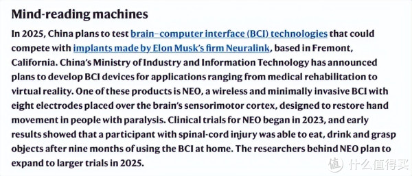 我国自主研发的NEO微创脑机接口系统更是入选《Nature》2025年值得关注的科学事件,作为中国“脑机接口”领域的代表被特别报道。